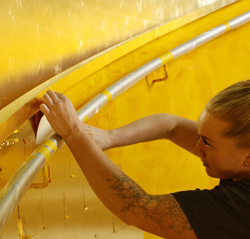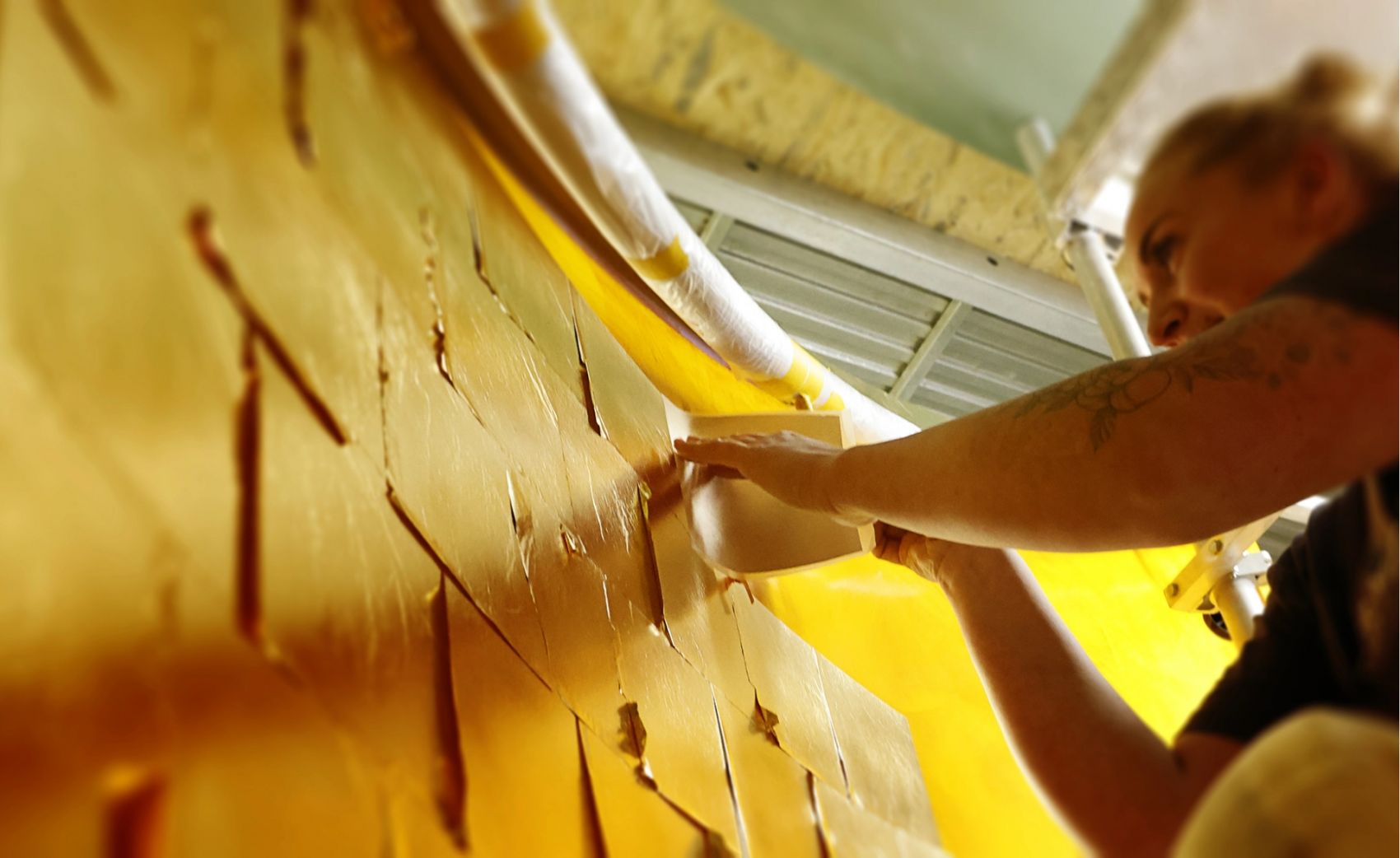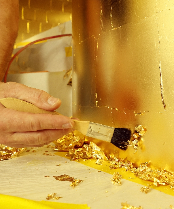 Entscheidend war das eingespielte Team. Klare Absprachen, ruhige Kommunikation und gegenseitiges Vertrauen prägten die Arbeit. Jeder Handgriff wurde bewusst gesetzt, jede Phase gemeinsam abgestimmt. Denn Gold reagiert sensibel auf Feuchtigkeit, Staub und kleinste Einflüsse. Konzentration, Disziplin und Verlässlichkeit waren deshalb durchgehend Voraussetzung. Was hier entsteht, ist Teamleistung in ihrer konzentriertesten Form.